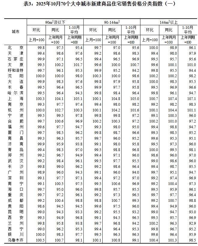 图:国家统计局 2025年10月份70个大中城市商品住宅销售价格变动情况